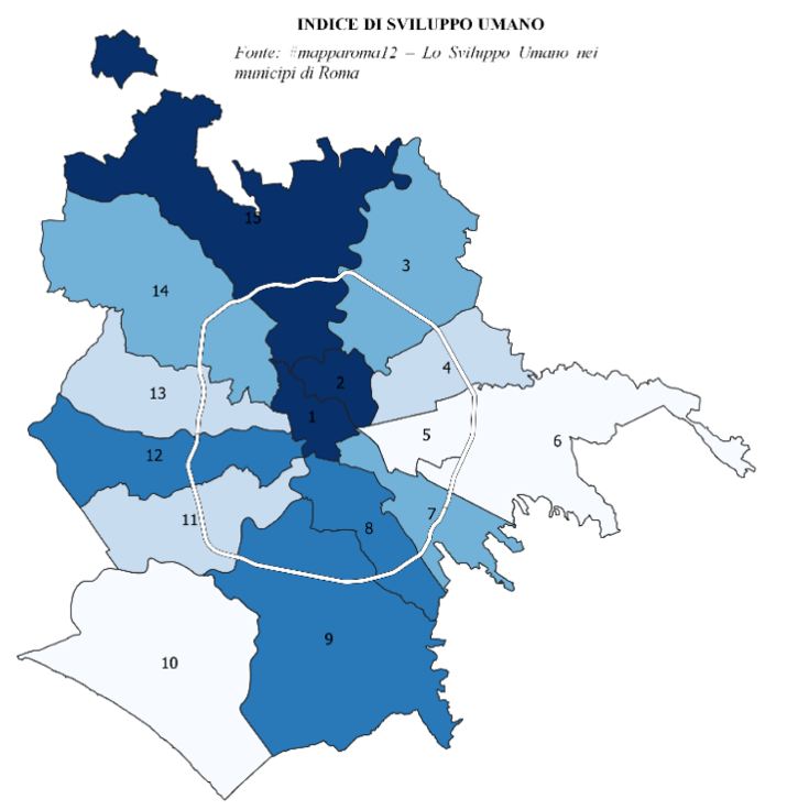 Le mappe di Roma, disegnano un’estensione dell’area cittadina slabbrata e una distribuzione a macchia di leopardo degli abitanti. Elementi questi che sono causa di disagio e rappresentano un problema di governo del territorio: un numero molto ampio di servizi essenziali per la vita collettiva deve essere recapitato alla più grande conurbazione di cittadini sparsi su un territorio estesissimo, secondo modalità di decisione e implementazione centralizzate, rendendo la vita quotidiana per i romani un notevole esercizio di pazienza.