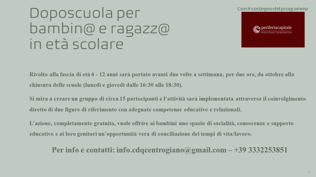 Per info e contatti: info.cdqcentrogiano@gmail.com.
