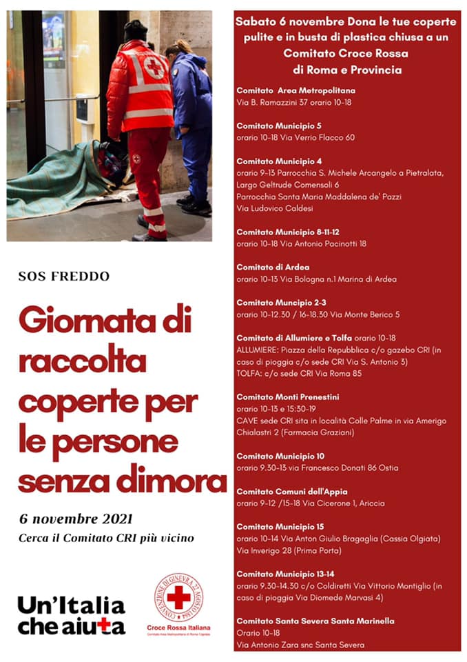 Le unità di volontari CRI forniscono quotidianamente pasti, kit igienici, coperte, assistenza infermieristica di base. Sabato 6 novembre sarà un’occasione per aiutare, con un semplice gesto, ma importante, tante persone